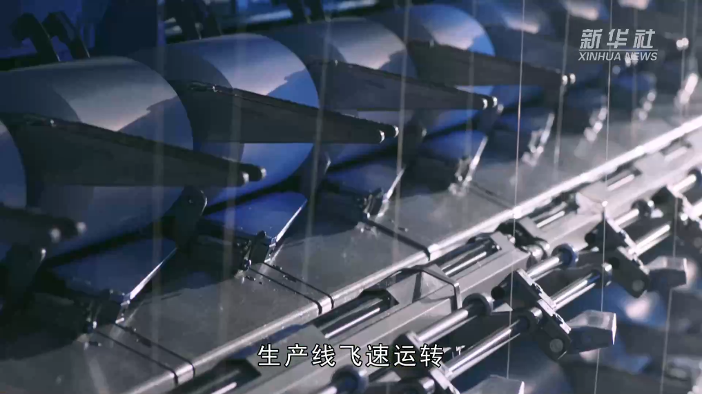 我们的原料就是我们的切片,我们采用的是管道输送系统,间接就靠系统投入到我们的出产线里面去。正在出产过程中,我们采用的是从动化的络筒机,从动外检到从动包拆,再到从动入库,我们采用的是立体仓库,都是从动化的。