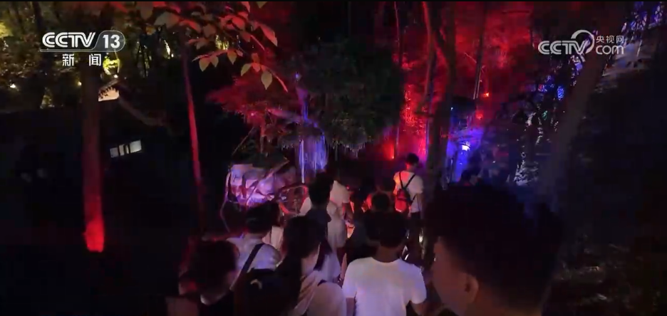正在八公山国度地质公园,不少旅客选择到丛林里避暑玩耍,出格是到了晚上,景区通过光影秀打制了夜间丛林的旅逛线余张儿童免费体验券,吸引旅客到来。