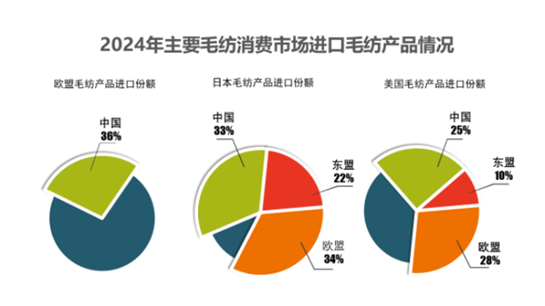 做为毛纺次要消费地域的欧盟、英国、美国、日本等发财经济体经济增速大都表示低迷,导致其消费市场驱动力不脚。2024年毛纺服拆成品消费数量下降较着。1-11月,美国、日本别离进口各类毛纺产物38。9和12亿美元,同比别离下跌2。8%和1%。1-10月,欧盟进口区外毛纺产物总额为38亿欧元,同比下降了8。1%。中国正在几个市场份额根基不变,美国市场上中国毛纺产物份额继续被欧盟跨越。